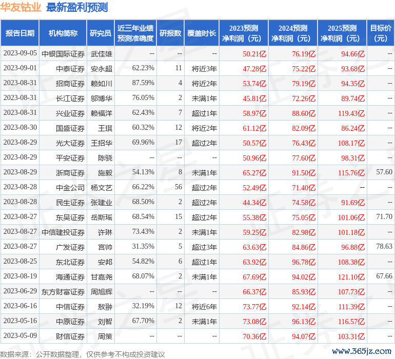 最新盈利預(yù)測(cè)明細(xì)如下: