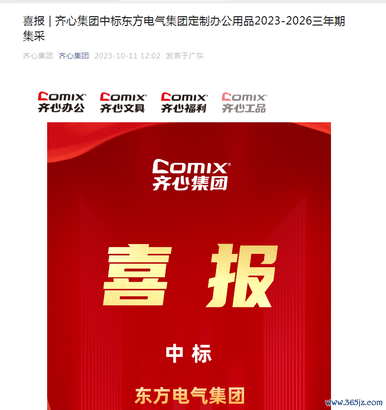 實(shí)盤杠桿配資公司 齊心集團(tuán)中標(biāo)東方電氣集團(tuán)定制辦公用品2023-2026三年期集采
